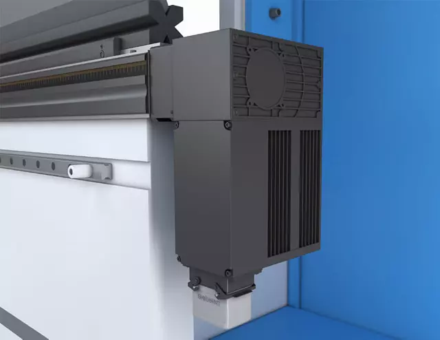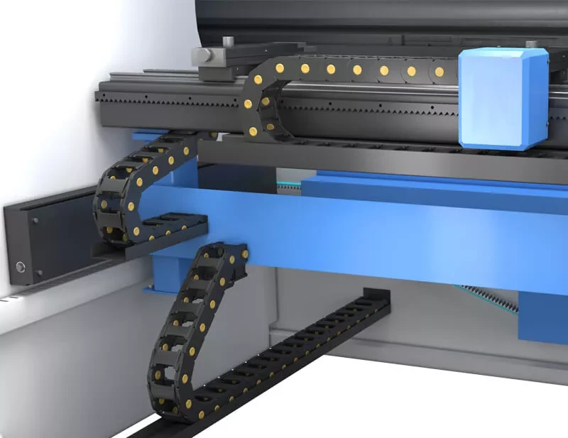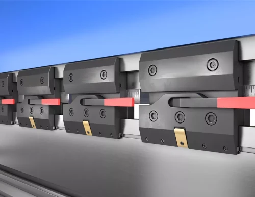 The backgauge of the press brakes is driven by brushless motors with recirculating ball screws to ensure high precision with low backlash. It is available in 2-, 4-, and 5-axis versions, as well as a 6-axis version with two independent turrets.